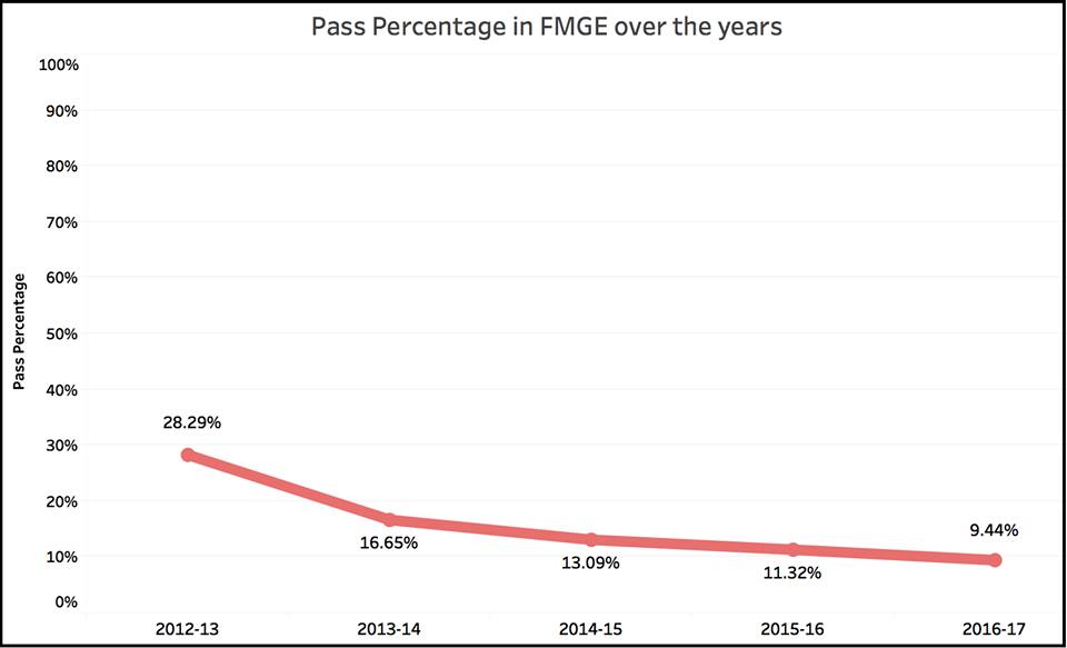 கடந்த சில ஆண்டுகளில் இப்படித் தேர்வு எழுதி மருத்துவர் உரிமம் பெற்றவர்கள் 16% மட்டும் தான்.