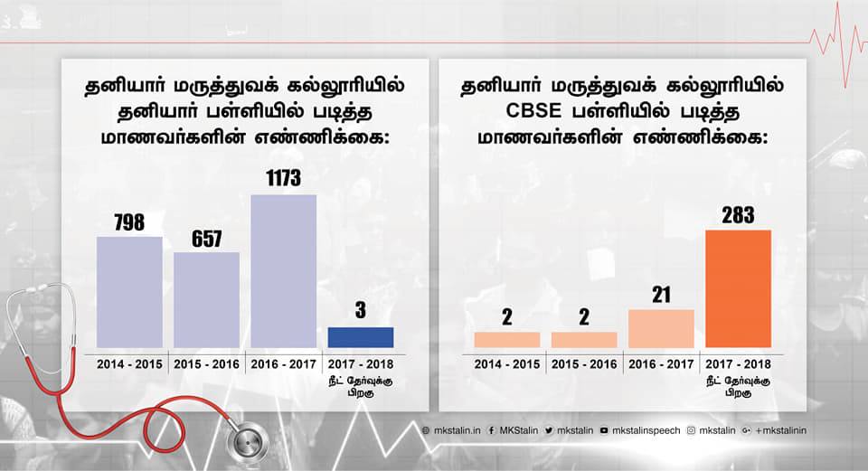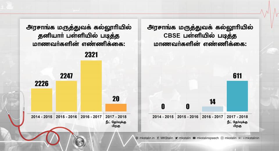 +2 முடித்து 2 ஆண்டுகள் இலட்சக்கணக்கில் தனியார் கோச்சிங் சென்டர்களுக்குப் பணம் கட்டிப் படிக்கக் கூடியவர்களும் CBSE மாணவர்களும் தான் நீட் தேர்வு மூலம் மருத்துவர்கள் ஆகிறார்கள்.