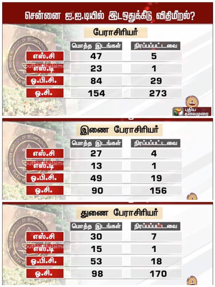 4. பெரும்பாலான மத்திய நிறுவனங்களில் இட ஒதுக்கீடு நுழைவுப் பணிகளுக்கு மட்டும் தான் நடைமுறைப்படுத்தப்படுகிறது. பதவி உயர்வு என்று வரும் போது சாதி பார்த்துக் கொடுப்பார்கள். அதனால் தான் உயர் பதவிகளில் உயர் சாதிகள் நிரம்பி உள்ளார்கள்.
