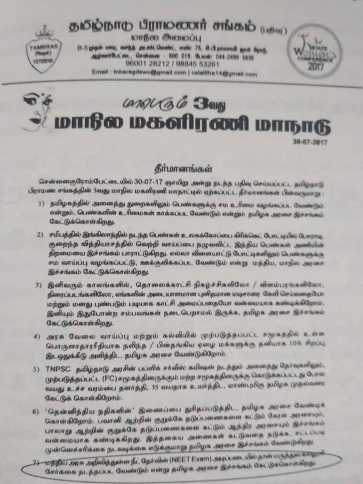 பார்ப்பனர்கள் சங்கத் தலைவரின் பேச்சையும் தீர்மானத்தையும் காணுங்கள்.